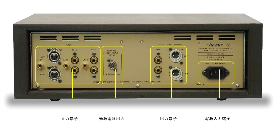入力: RCA PIN×2, XLRバランス×1(光電カートリッジ専用)