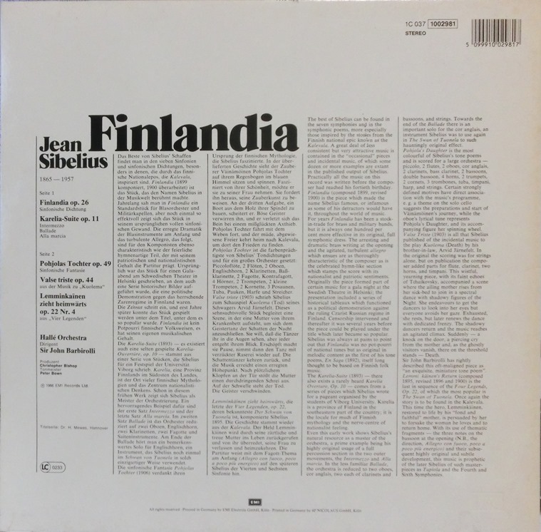 独EMI バルビローリ/フィンランディア〜管弦楽曲集 ハルレO