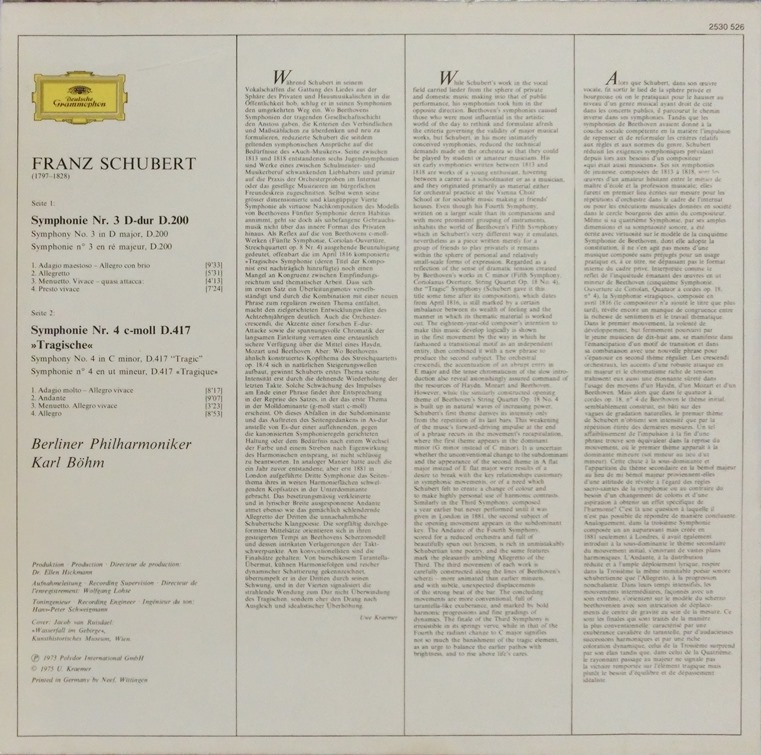独DG ベーム&BPO/シューベルト 交響曲第3番, 4番「悲劇的」