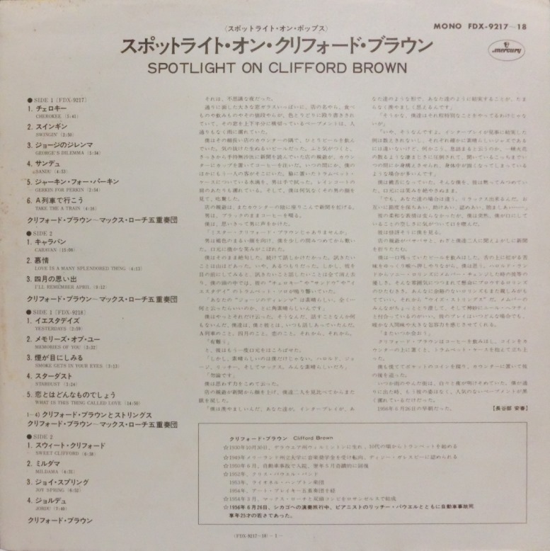 Mercury [2LP] Clifford Brown クリフォード・ブラウン/SPOTLIGHT ON〜ベスト