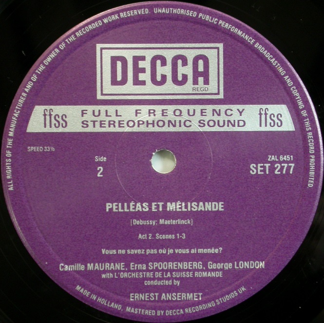 アンセルメ/ドビュッシー 歌劇「ペレアスとメリザンド」(全曲) 3LP