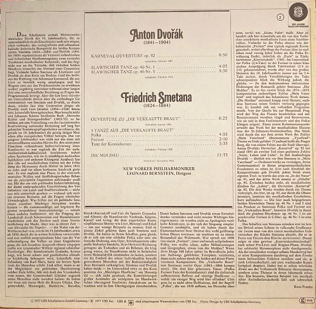 独CBS バーンスタイン/ドヴォルザーク 序曲「謝肉祭」スラヴ舞曲, スメタナ「売られた花嫁」「モルダウ」」