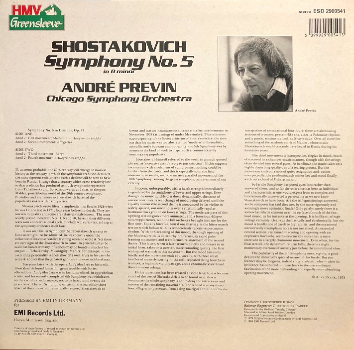 英EMI [独プレス] プレヴィン/ショスタコーヴィチ 交響曲第5番