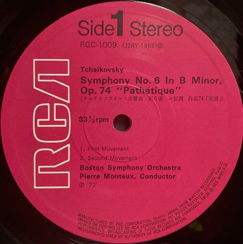 RCA モントゥー/チャイコフスキー 交響曲第6番「悲愴」