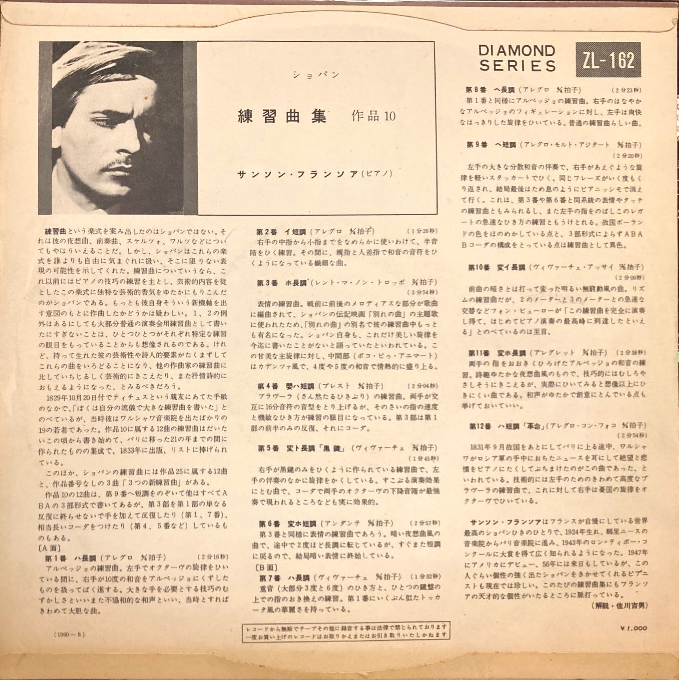 COLUMBIA [10インチ、バラ2枚セット] フランソワ/ショパン 練習曲集OP.10, 25(全24曲)