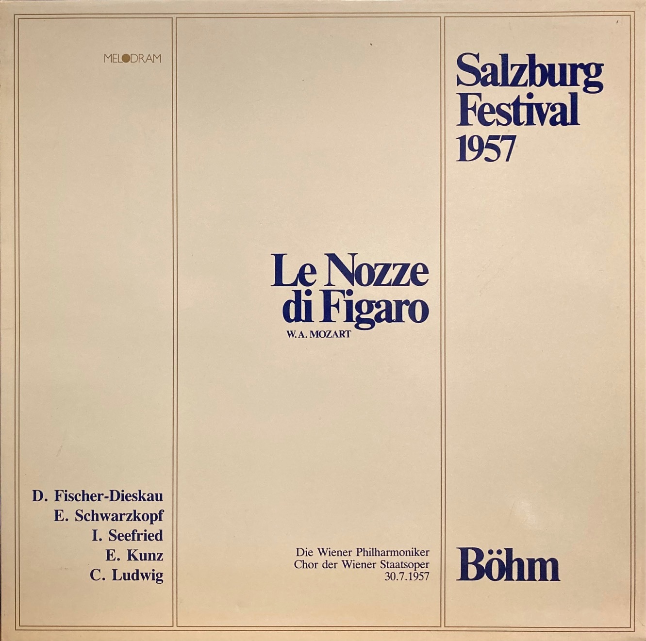 伊MELODRAM [3枚組] ベーム&ウィーン・フィル, 1957ザルツブルク音楽祭ライヴ/モーツァルト 歌劇「フィガロの結婚」