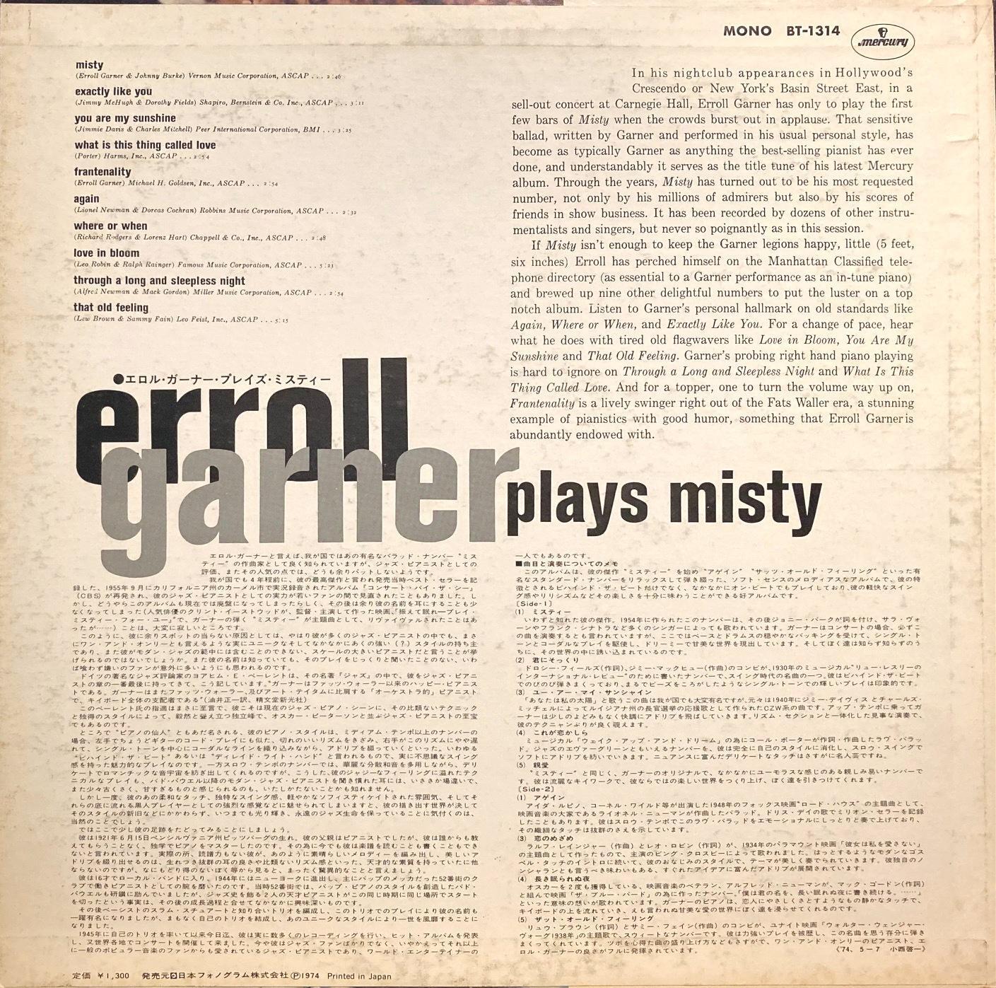 Mercury エロール・ガーナー/PLAYS MISTY [戻る]