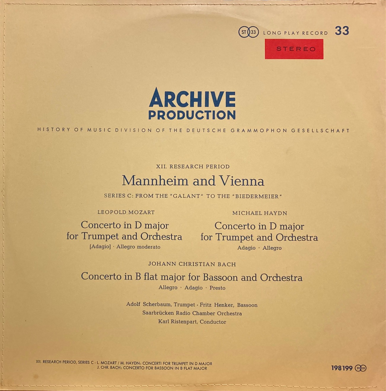 独ARCHIV リステンパルト&シェルバウム/L.モーツァルト&M.ハイドン トランペット協奏曲 他