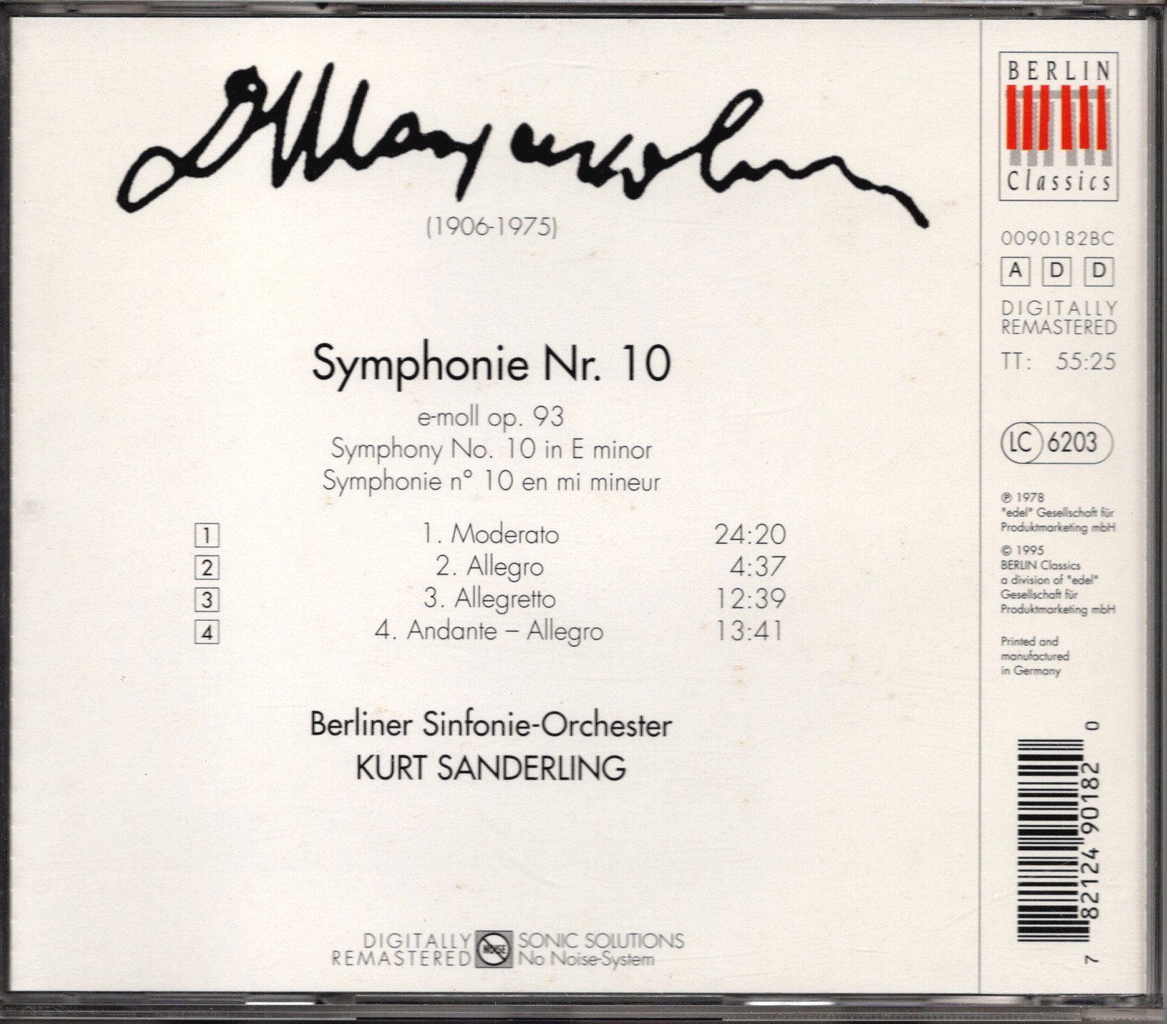 [中古CD] 独BERLIN Classics(ETERNA) ザンデルリンク/ショスタコーヴィチ 交響曲第10番