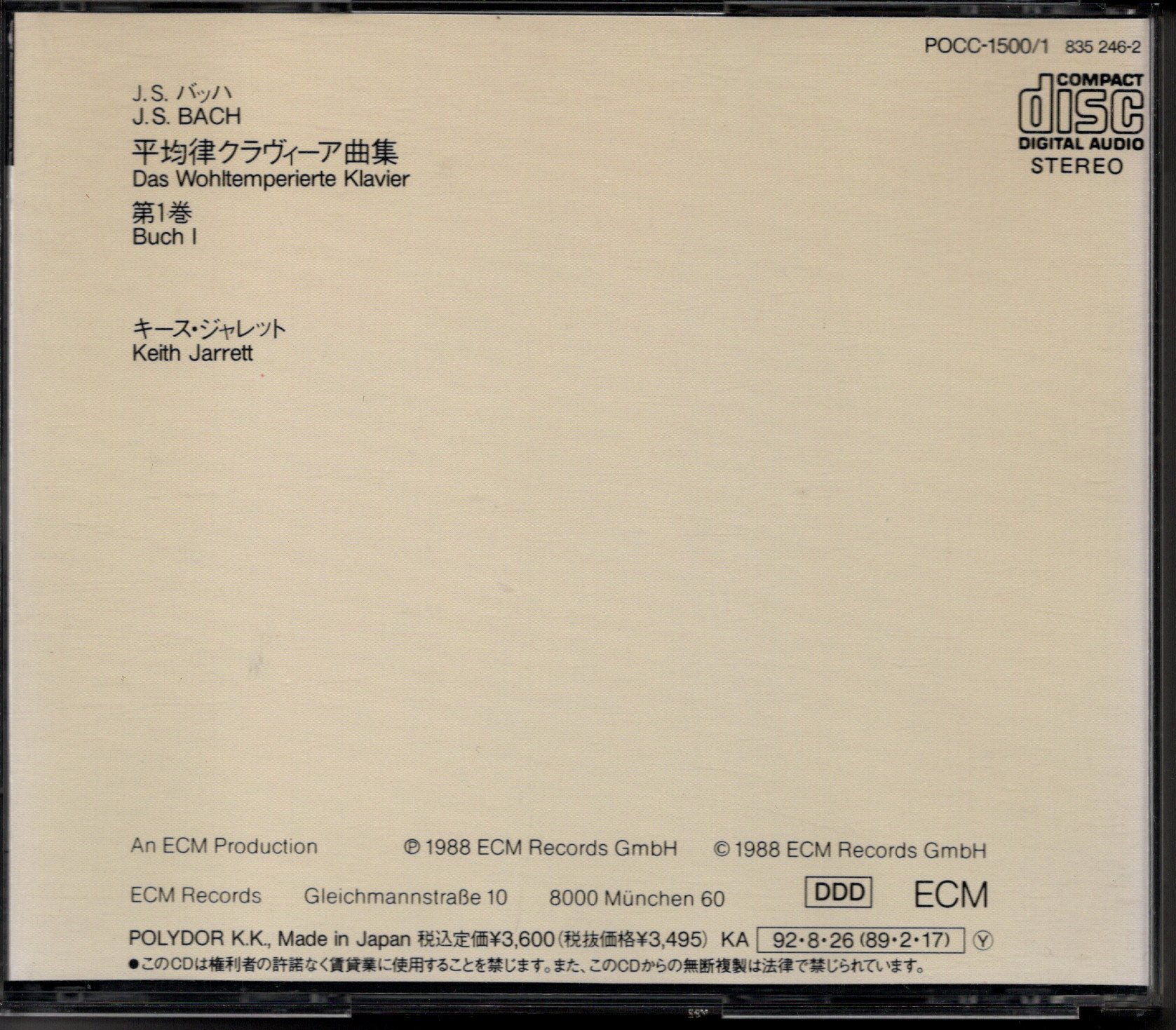 [中古CD, 2枚組] ECM キース・ジャレット/J,S.バッハ 平均律クラヴィーア曲集第1巻 [戻る]
