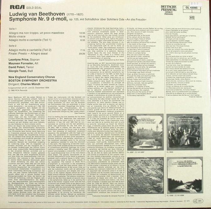 独RCA ミュンシュ/ベートーヴェン 交響曲第9番「合唱」 BSO