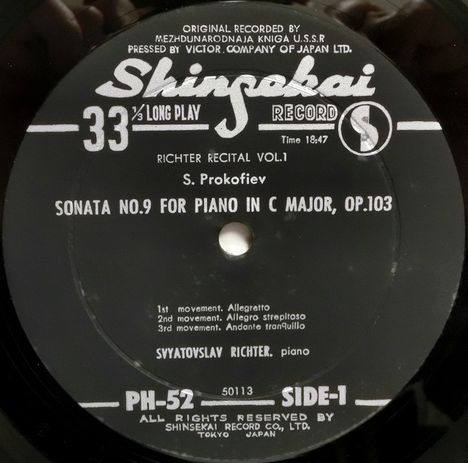 @Shinsekai リヒテル/プロコフィエフ ピアノソナタ第9番, シューマン 幻想小品集より 10インチ盤