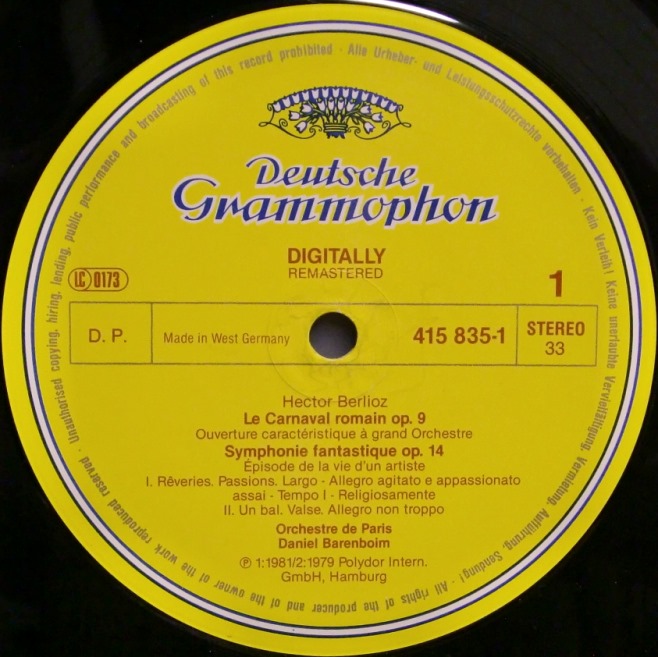 独DG バレンボイム&パリ管/ベルリオーズ 幻想交響曲, ローマの謝肉祭
