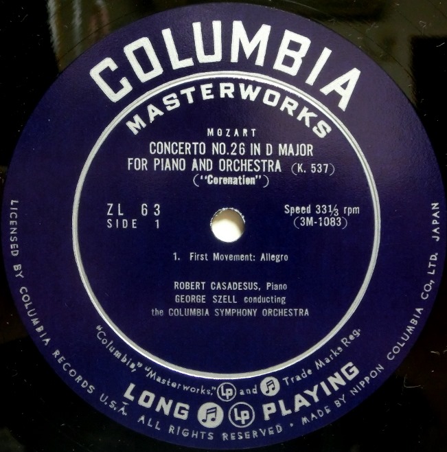 @COLUMBIA カサドシュ&セル/モーツァルト ピアノ協奏曲第26番「戴冠式」 10インチ盤