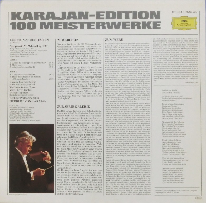 グンドゥラ・ヤノヴィッツ(S)、ヒルデ・レッセル=マイダン(A)、ワルデマール・クメント(T)、ワルター・ベリー(Br) ヘルベルト・フォン・カラヤン指揮 ベルリン・フィルハーモニー管弦楽団 ウィーン楽友協会合唱団(合唱指揮: ラインホルト・シュミット)