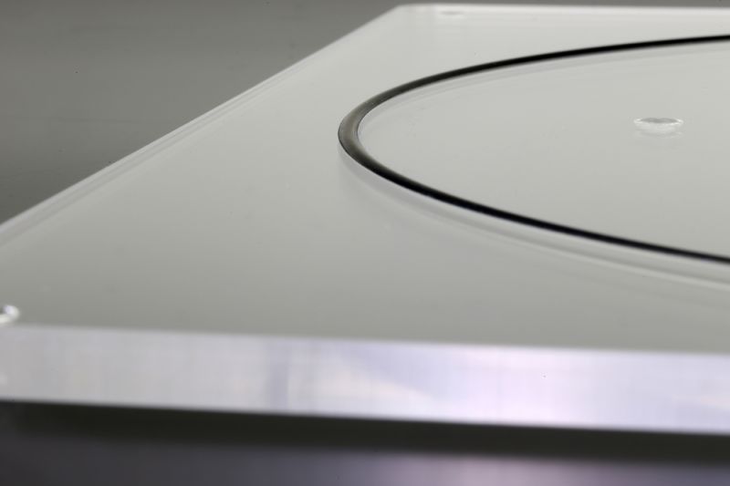 今までの作業マットは上にレコードを置くことを考えて傷をつけないように柔らかいフォーム素材でできていましたが、それを根本から覆すレコードより硬いアクリルを本体に採用。