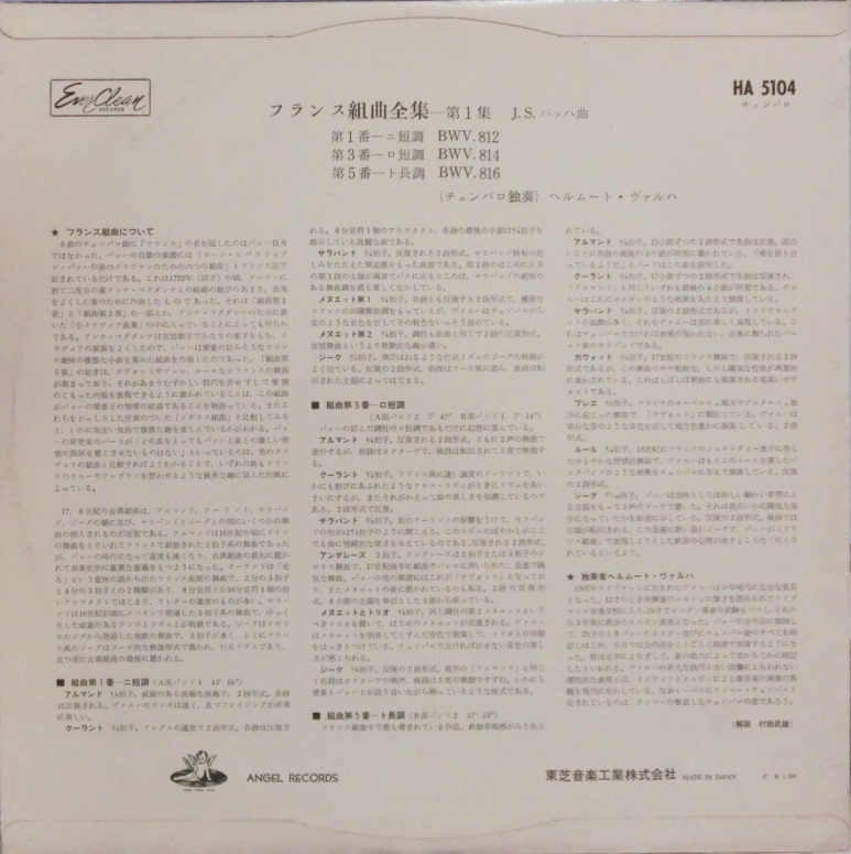 ANGEL[赤盤] ヴァルヒャ/J.S.バッハ フランス組曲第1,3,5番