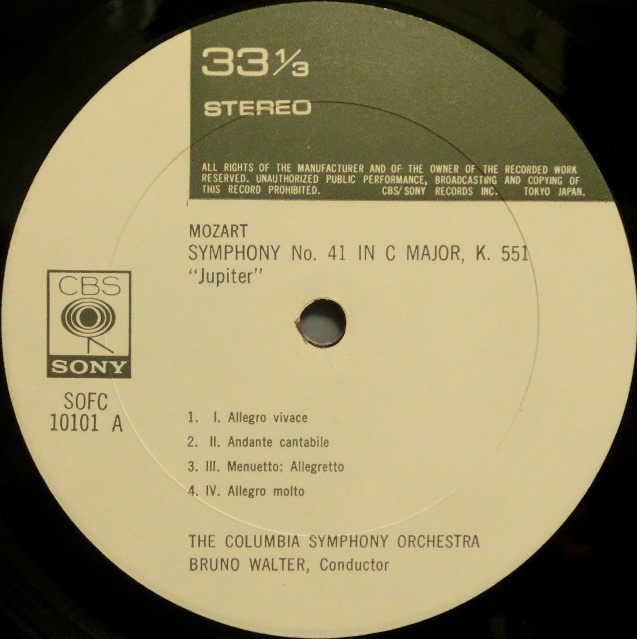 CBS [2LP] ワルター/モーツァルト ジュピター&39番, ブラームス 交響曲第1番