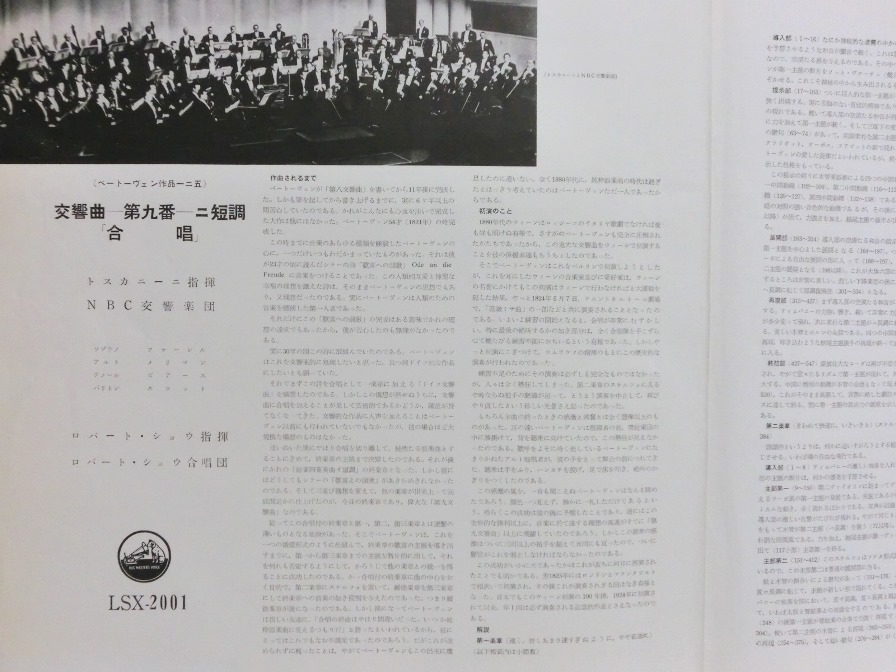 この録音は、'52年3月下旬、同じ演奏者により行なわれたコンサートの数日後、3月31日〜4月1日にわたって、同じカーネギー・ホールで収録されました。 トスカニーニによる第9の録音はこれ以前に4回(!)試みられましたが、ことごとく彼の満足を得られず、発売に至りませんでした。 この5回目の試みで、当時85歳となっていた老巨匠はようやくOKを出したそうです。