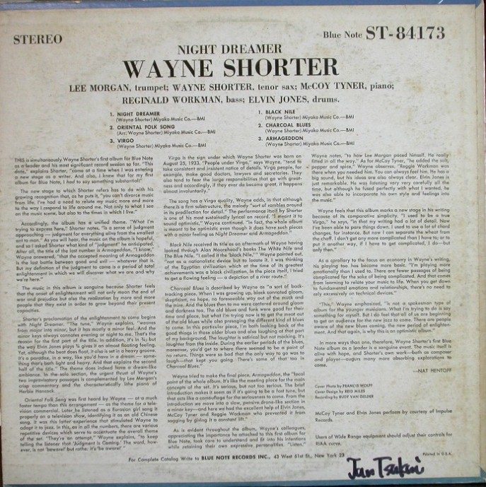リー・モーガン(tp)、ウェイン・ショーター(ts)、マッコイ・タイナー(p) レジナルド・ワークマン(bs)、エルヴィン・ジョーンズ(drums)