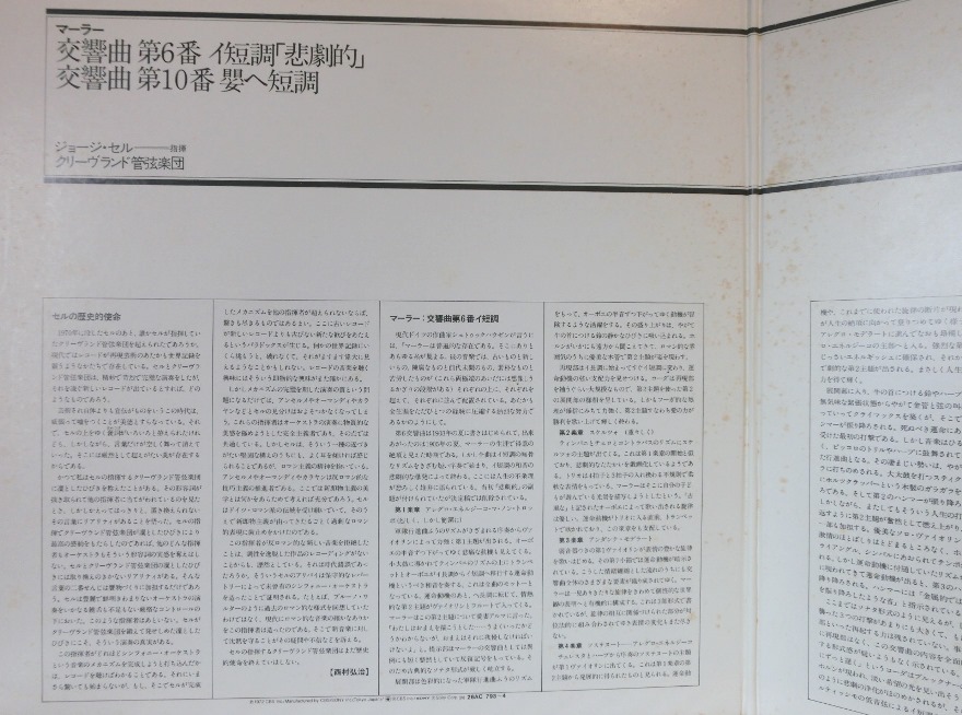 CBS [2LP] セル/マーラー 交響曲第6番「悲劇的」, 第10番