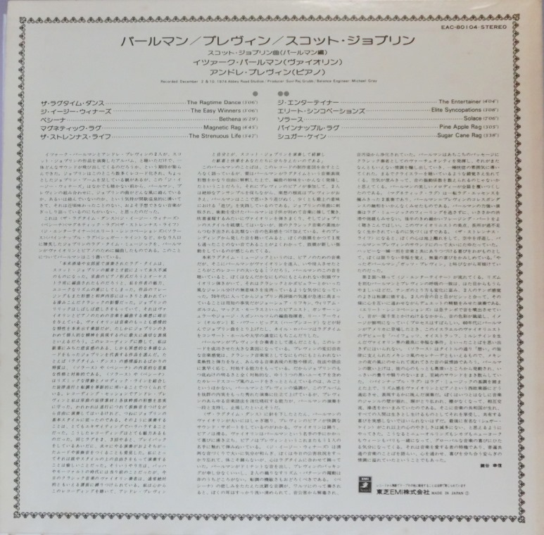 パールマンによるヴァイオリンとピアノのための編曲、ピアノにプレヴィンというこれ以上無い人選でのレコーディング。名盤。