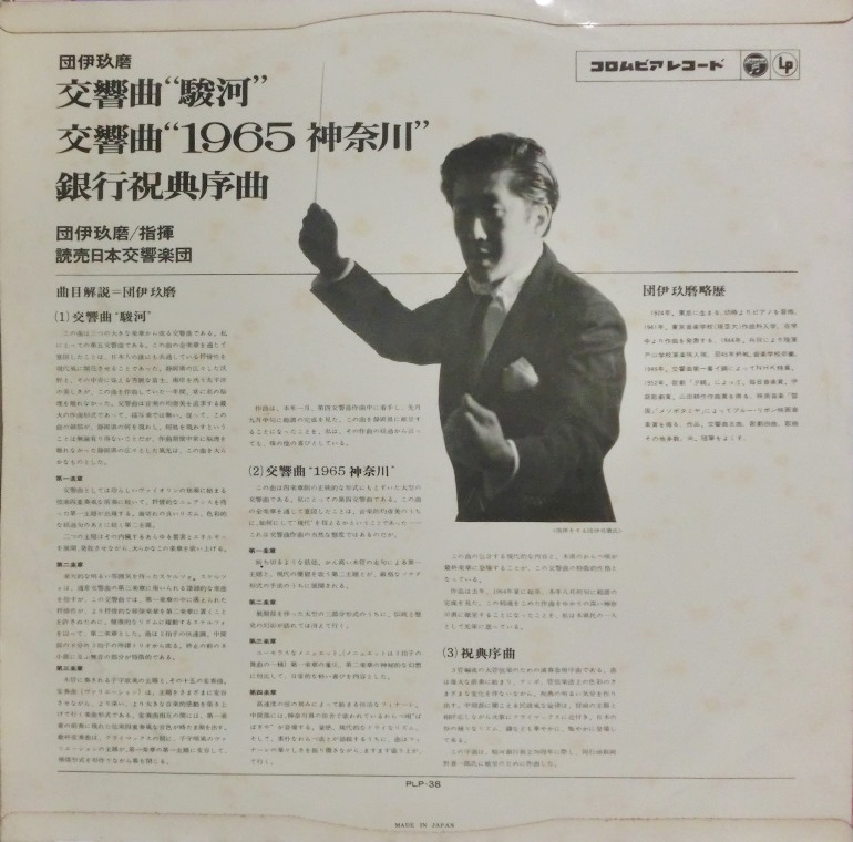 COLUMBIA 團伊玖磨/交響曲「駿河」,「1965神奈川」他