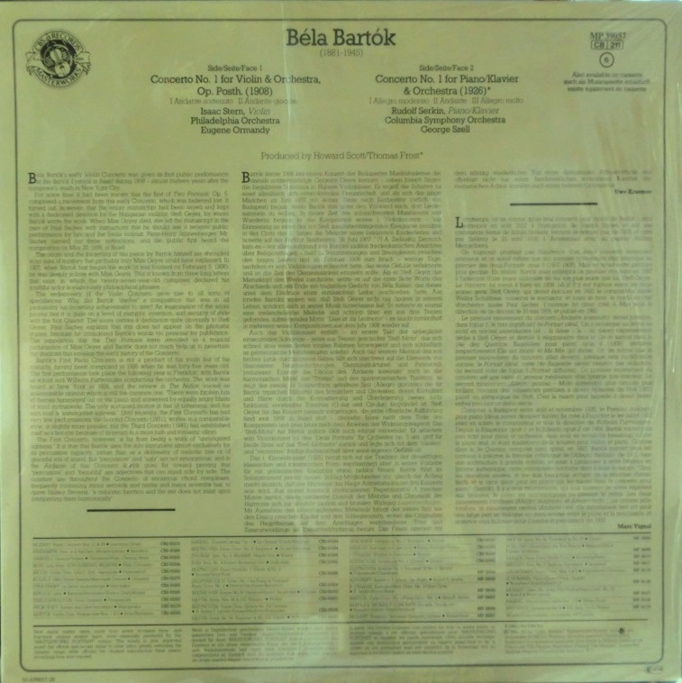 蘭CBS [未開封] スターン, ゼルキン/バルトーク Vn.協奏曲第1番, Pf.協奏曲第1番