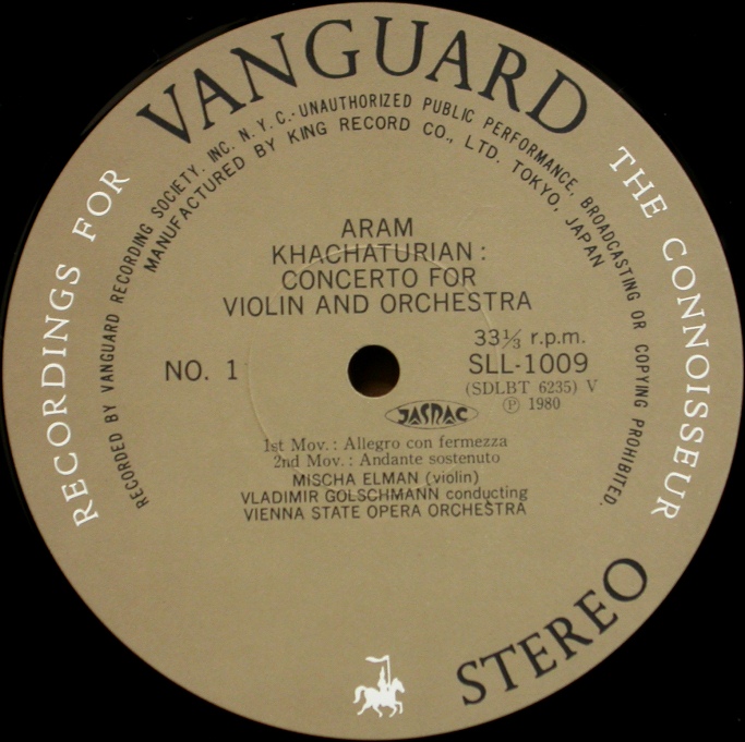 ハチャトゥリアンではこの曲でよく行われる技巧的に快速で飛ばす演奏でなく、いかにもエルマンらしい人懐っこく暖かい歌い回しが聴かれます。 この録音で彼が弾いているヴァイオリンは、かつてナポレオンが所有していたストラディヴァリウスで、レカミエ夫人に献呈したため「レカミエ」と呼ばれる1717年製の銘器だそうです。今はどうなっているのでしょう? バックはフランス出身のロシア系アメリカ人、ロシア・バレエ団の指揮者も務めたゴルシュマンとウィーン・フィル。