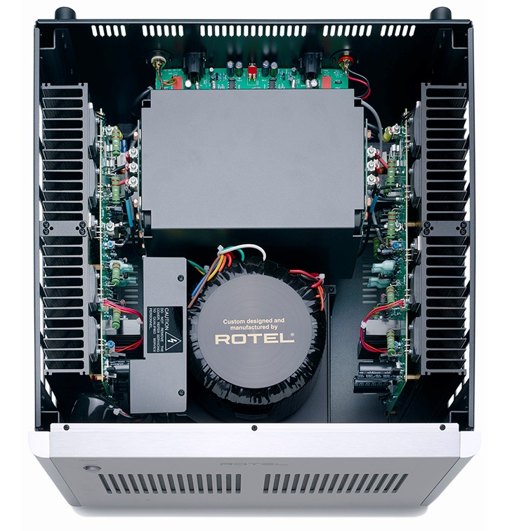 電源部にはROTEL お得意の大型デュアル・トロイダルトランス、低損失と高速応答で知られる英国製BHC コンデンサーを8個搭載。