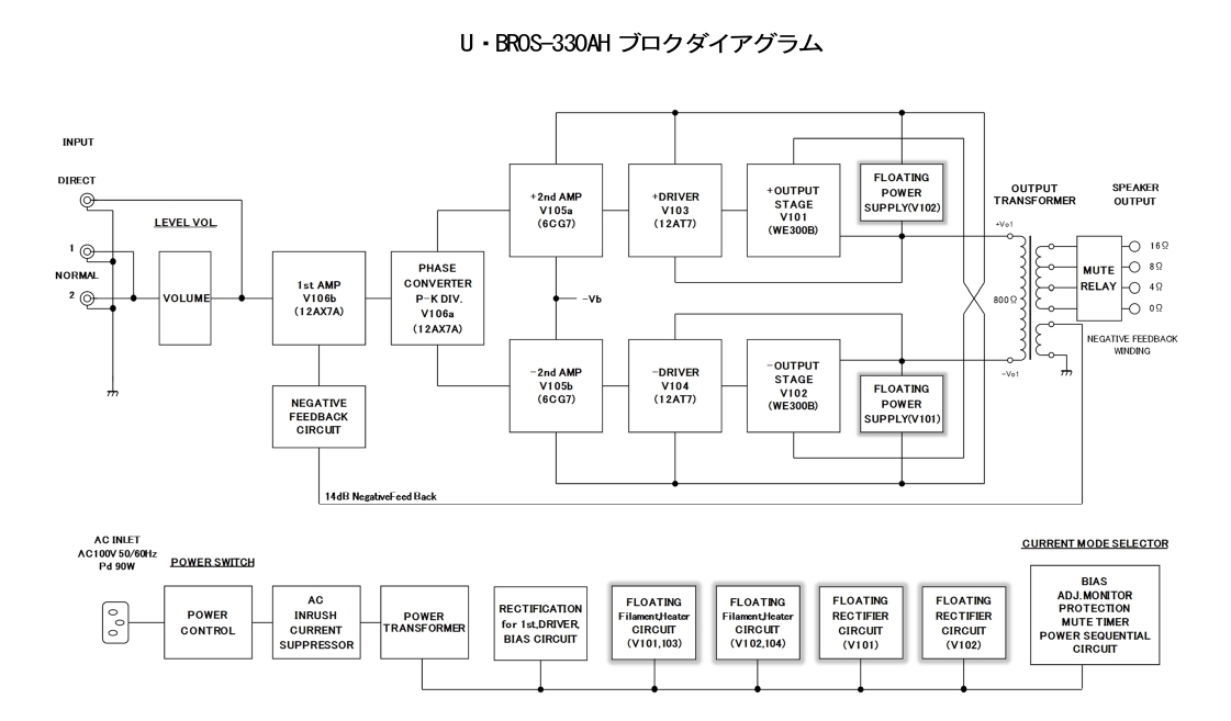 上杉研究所はプッシュプル回路の一種であるサークロトロン(Circlotron)出力回路を採用したパワーアンプの製品化を積極的に進めていますが、このたび直熱三極管の雄である300B を同回路の出力管として用いたプッシュプルパワーアンプU-BROS-330AH が創業50周年記念の最終モデルとして発売されました。