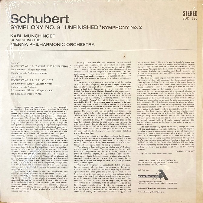 英DECCA ミュンヒンガー&ウィーン・フィル/シューベルト「未完成」, 交響曲第2番