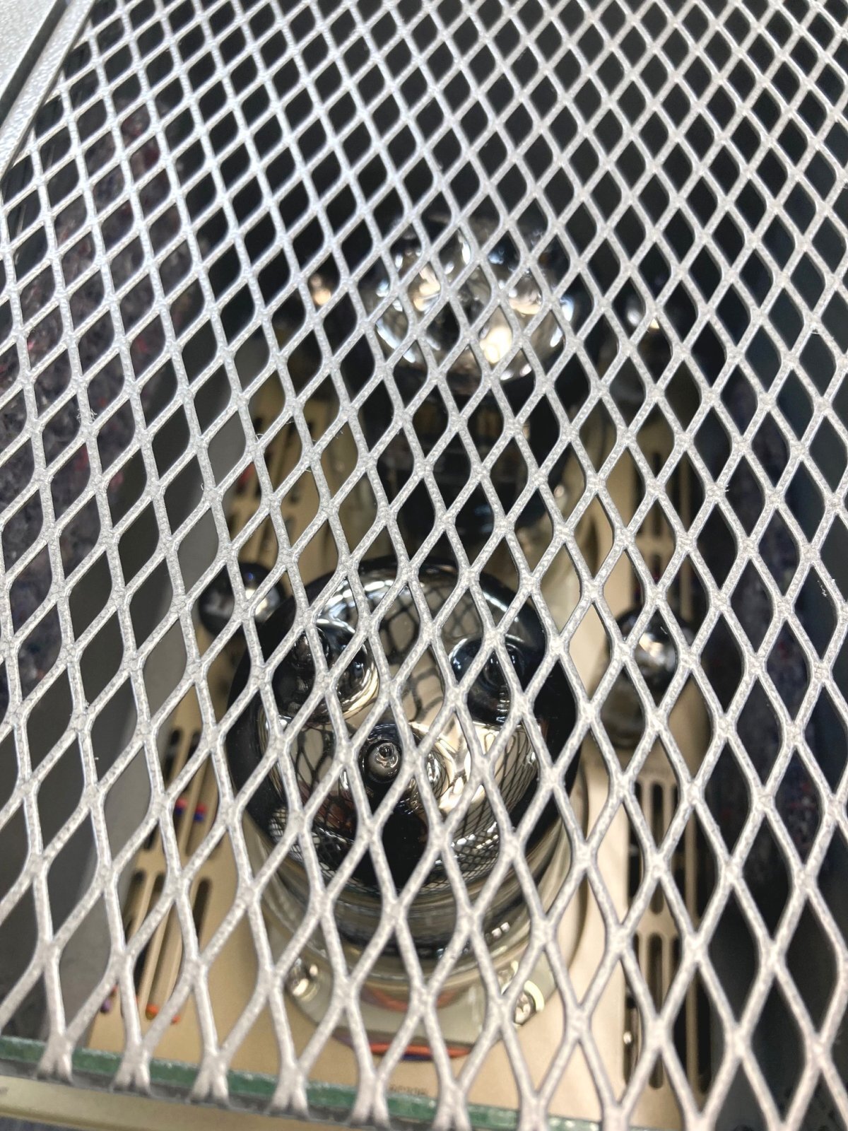 (3) チムニー(煙突)構造の真空管カバーを採用した放熱設計により効率的な冷却空気の吸排気が行われ、シャーシー内部温度を約10℃ 低下(従って標準装備される真空管カバーは常時装着が必要)。