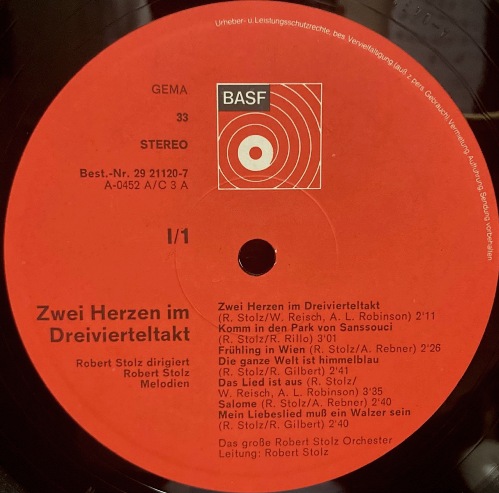 すべてウィーン音楽の大家、ロベルト・シュトルツ(1880-1975)の作曲。