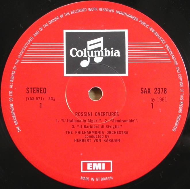 フィルハーモニア時代の颯爽としたカラヤンにはロッシーニはピッタリ! 音符レーベル。