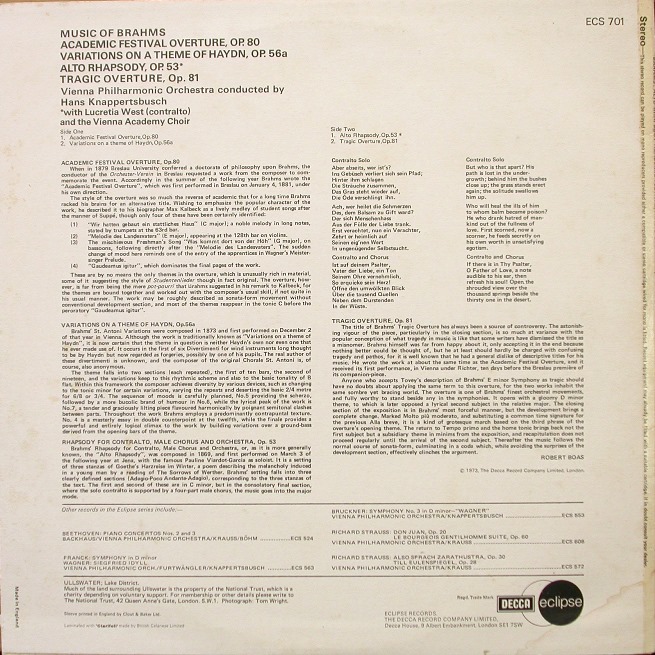 ハンス・クナッパーツブッシュ指揮 ウィーン・フィルハーモニー管弦楽団 *ルクレティア・ウェスト(Contralto)