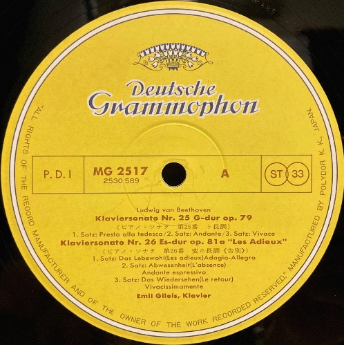 DG ギレリス/ベートーヴェン ピアノ・ソナタ第25番, 26番「告別」, 第27番