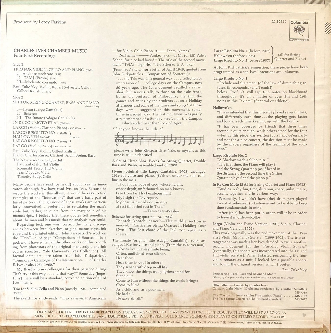 米COLUMBIA アイヴズの室内楽作品集/P.ズーコフスキー他