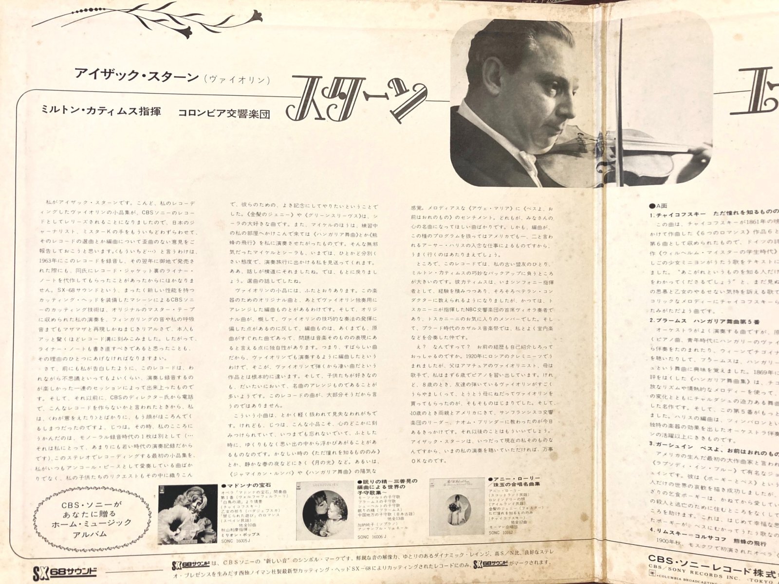 こうした小品集は、スターンが楽しみにしていた録音だそうで、以下のようなコメントが載っています: