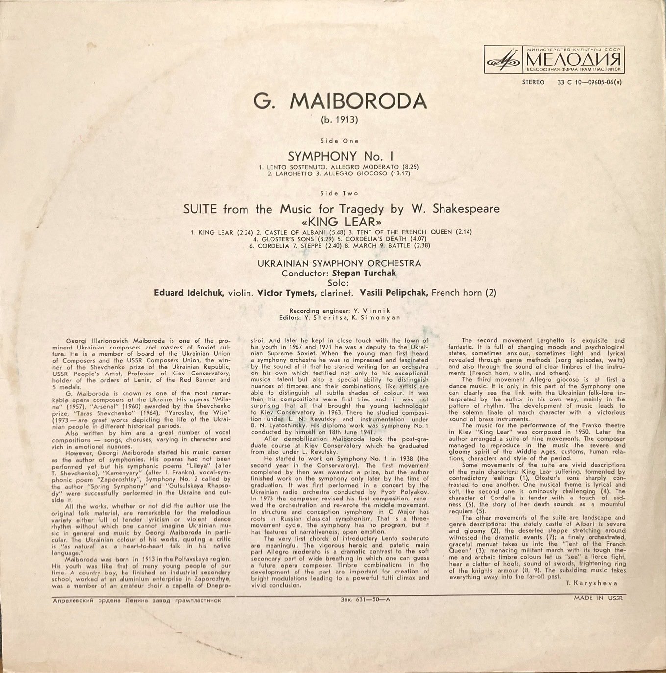 ゲオルギー・マイボローダ(1913-92)はウクライナ出身のソ連の作曲家。弟のプラトン・マイボローダも作曲家。