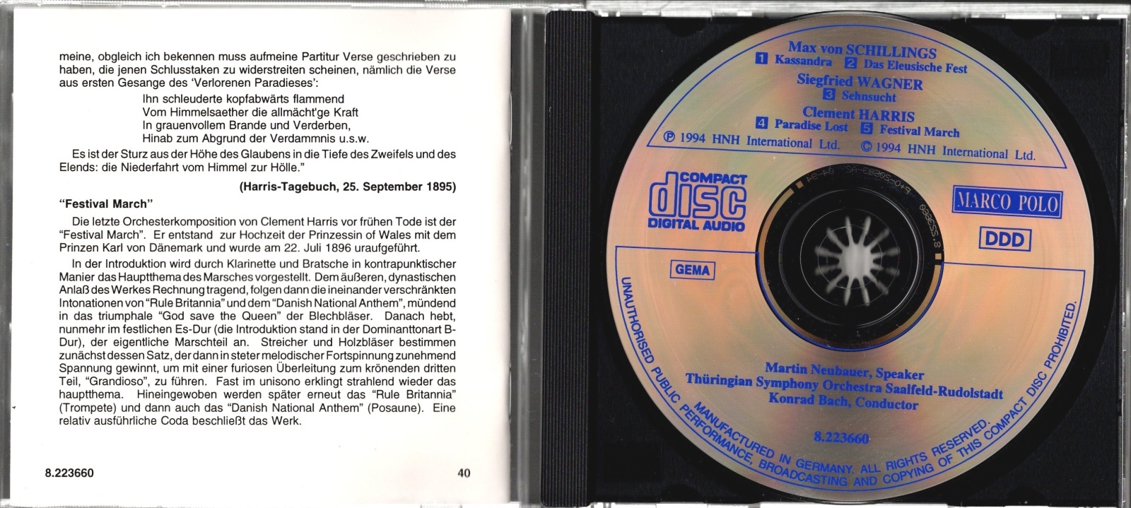 クレメント・ハリスは25才で戦死したイギリスの作曲家。ジークフリート・ワーグナーとは半年に及ぶ船旅を行うなど密接な親交がありました。