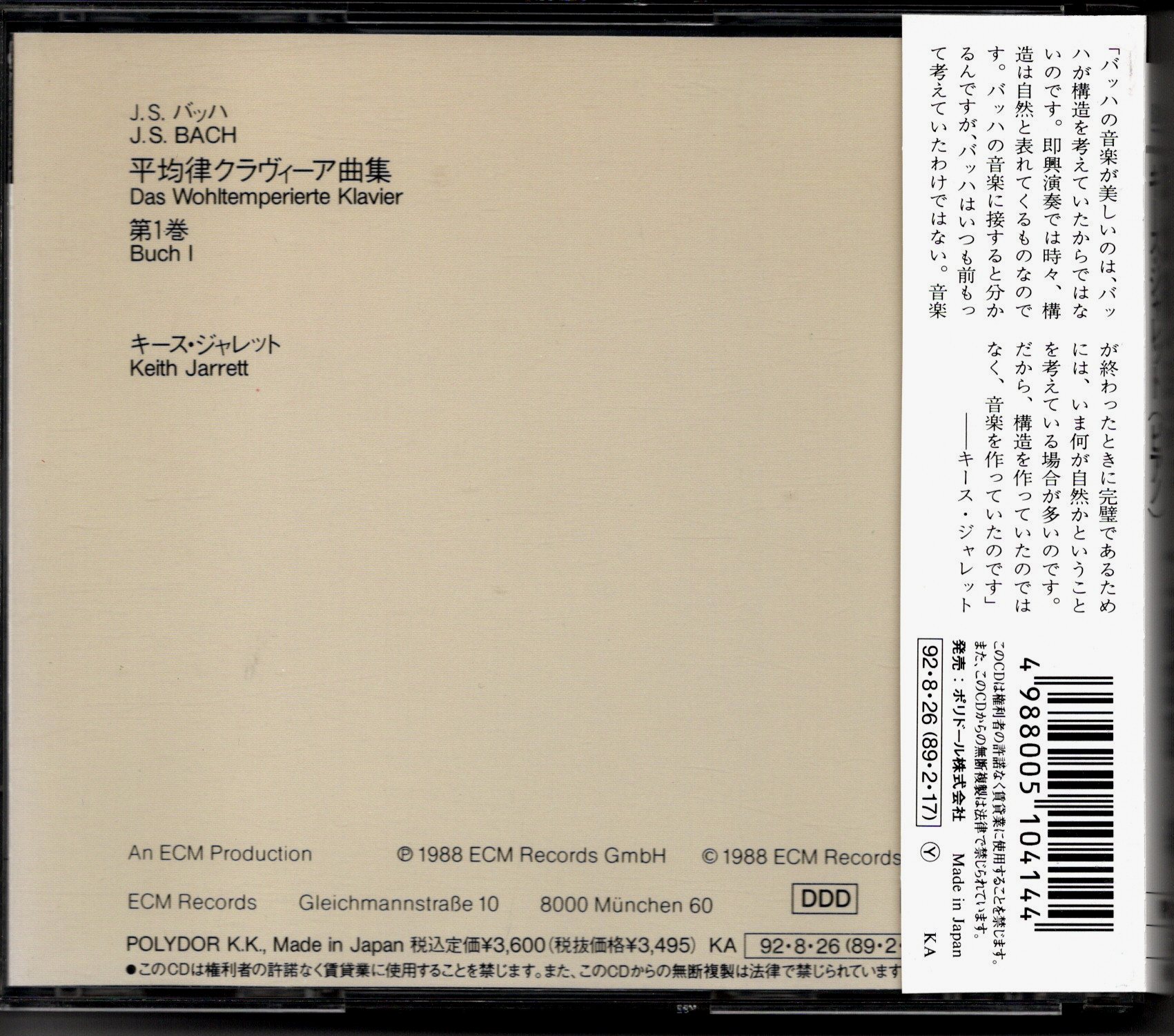 [中古CD, 2枚組] ECM キース・ジャレット/J,S.バッハ 平均律クラヴィーア曲集第1巻