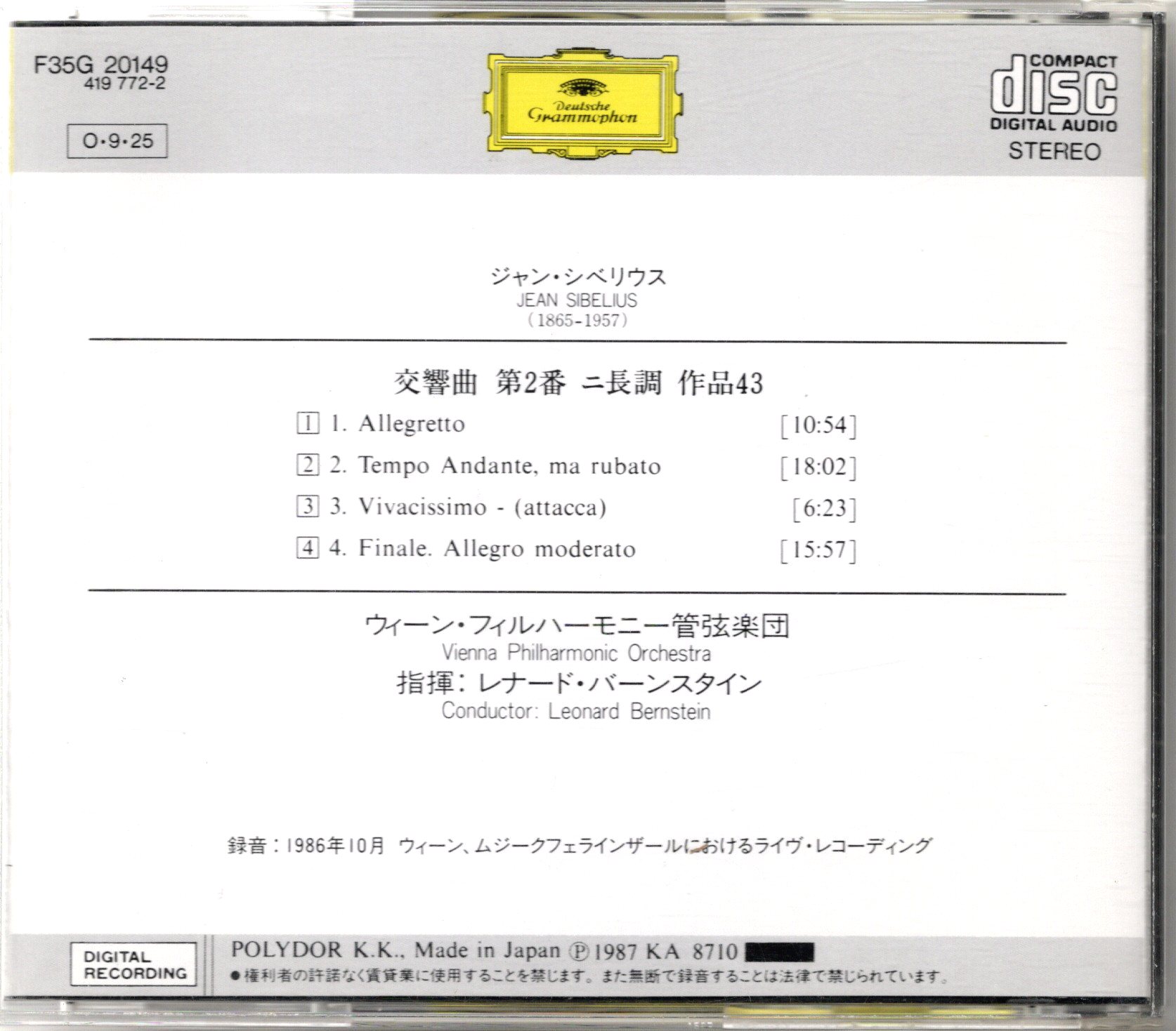 1986.10、ムジークフェラインザール(ウィーン)、ライヴ録音