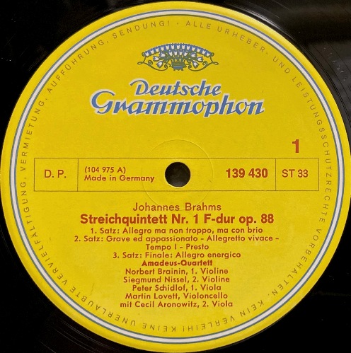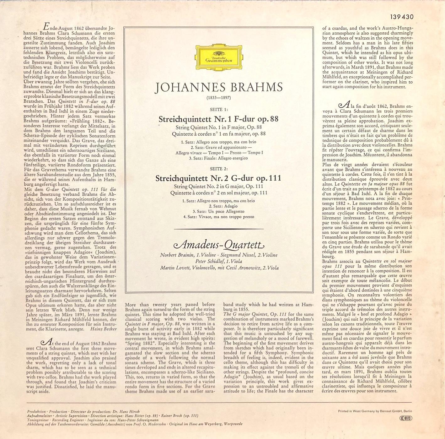 独DG アマデウス弦楽四重奏団&アロノヴィッツ/ブラームス 弦楽五重奏曲第1番, 2番