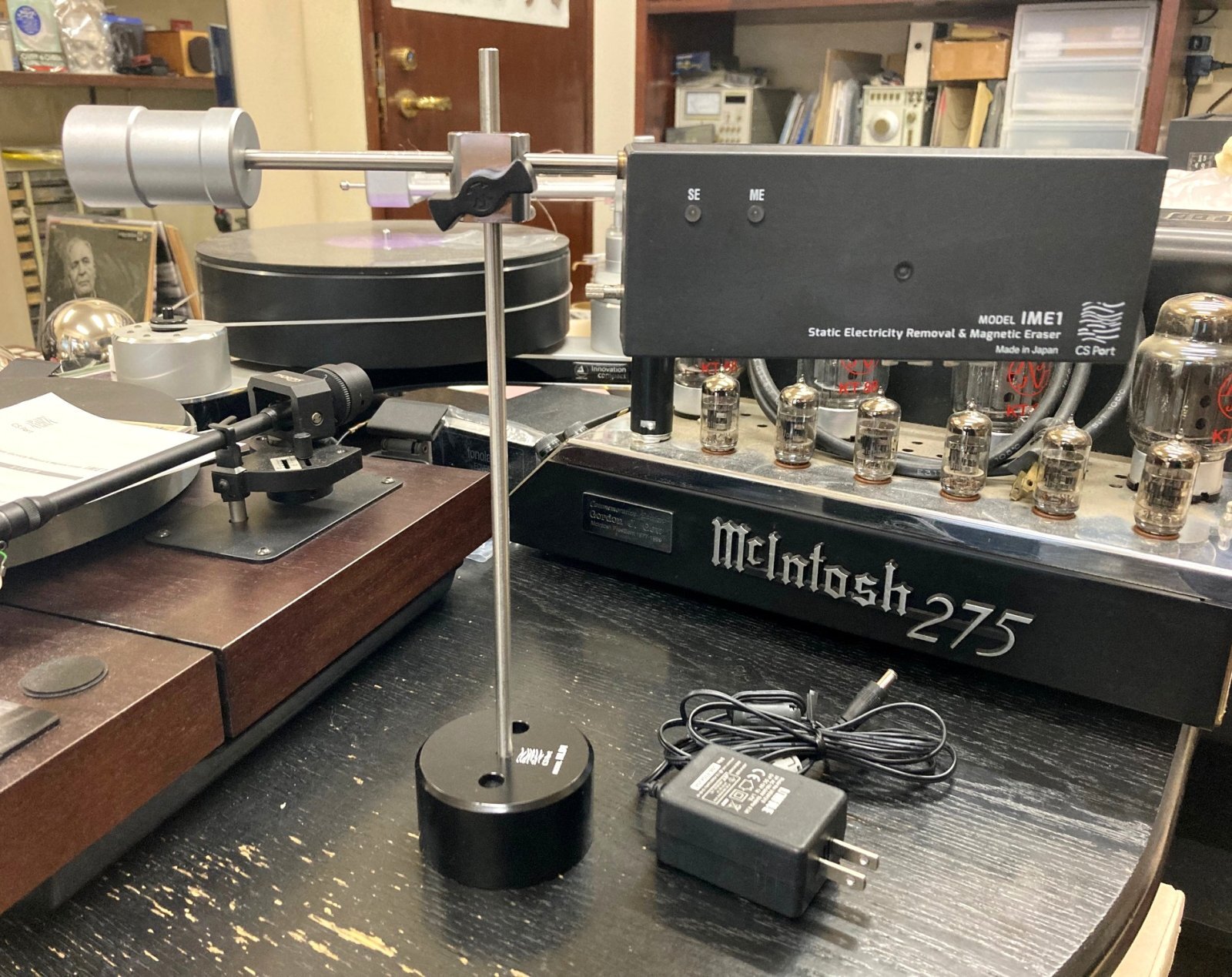 ボタンを押すと約12秒間、減衰磁界がIME1 の下部から放射されレコード盤の磁気を消去します。