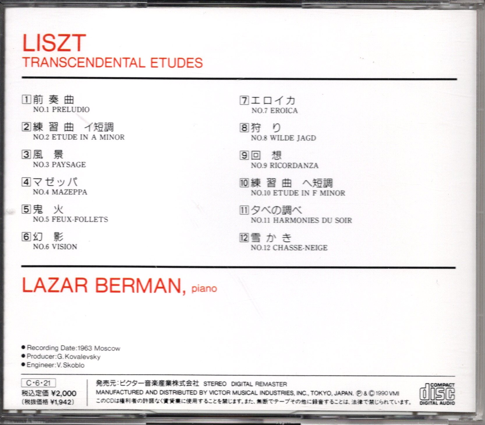 [中古CD] MELODIYA ベルマン/リスト 超絶技巧練習曲(全曲)
