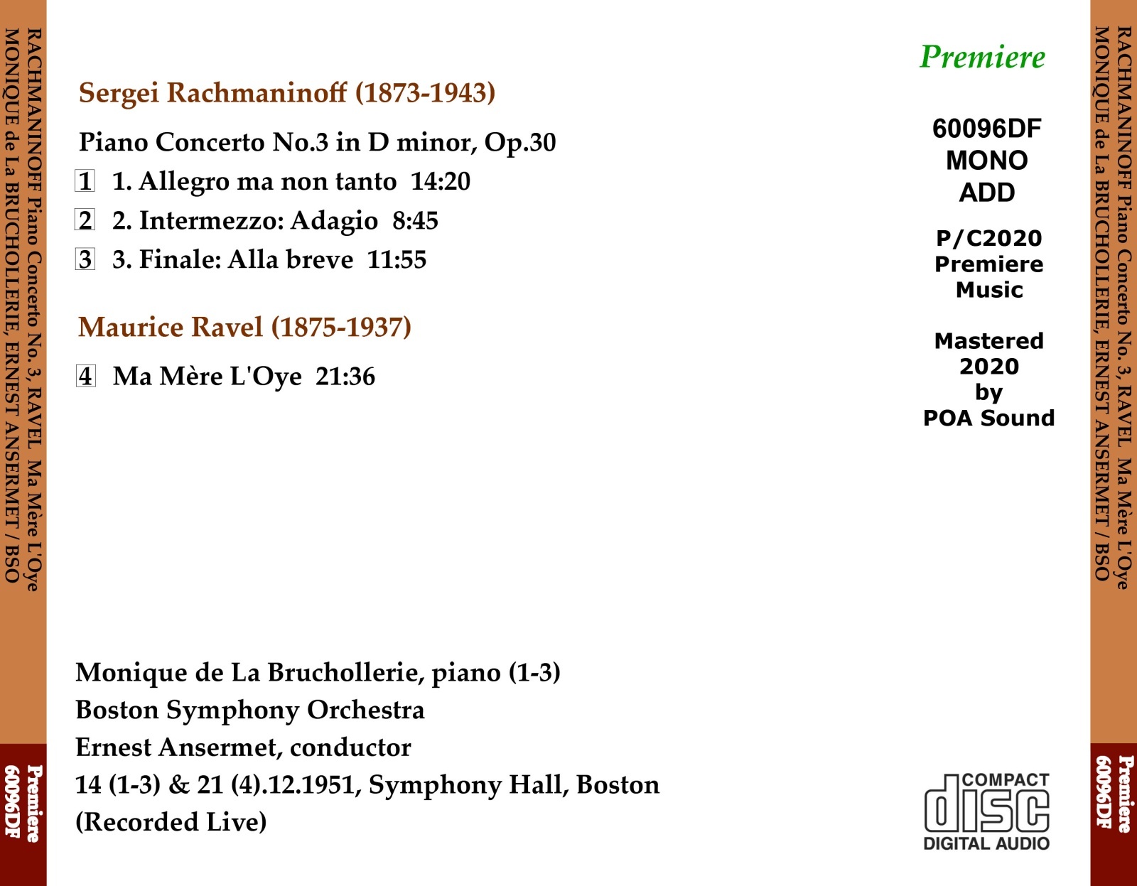 モニク・ドゥ・ラ・ブリュショルリは、上記のように、ラフマニノフのピアノ協奏曲第3番のスタジオ録音を残さず、当ディスクが現在確認されている唯一の録音である。