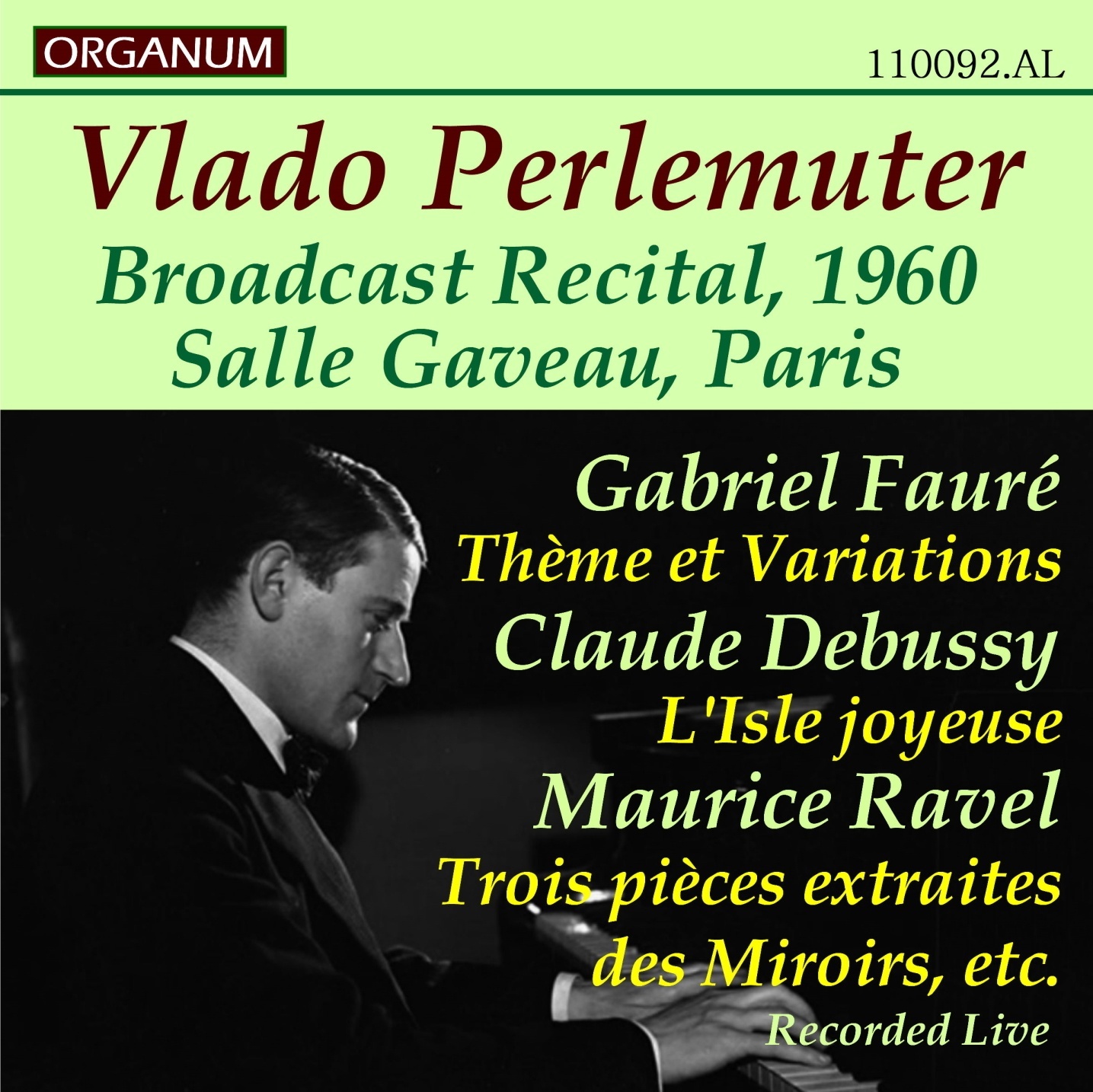ペルルミュテールは、フォーレの主題と変奏を1972年にデンオン、1982年にニンバスに録音。ラヴェルの「鏡」から「悲しげな鳥たち」「海原の小舟」「道化師の朝の歌」と「クープランの墓」から「トッカータ」を1954年ヴォックス、1973年ニンバスに録音したほか、ドビュッシーの「喜びの島」の1961年ライヴ録音、「トッカータ」の1968年BBC放送録音が残されている。