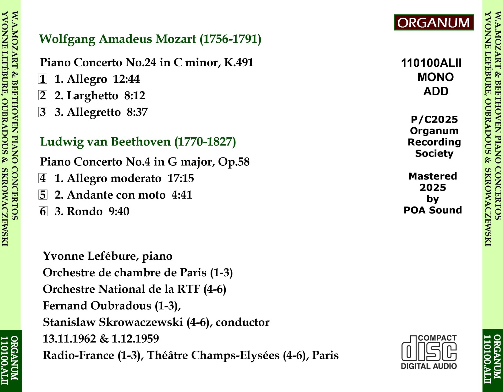 フランス国立放送の持つラジオチャンネルの一つ「パリ・アンテル」(1960年頃にはフランス・アンテルと改称か)による聴衆を入れた公開録音で、音源はエアチェックと思われるが、高品質な機材を使用したためかモノラルながら音質は極めて良好。いわゆるハイファイ的な派手な録音ではなく、素直で堅実な録音だが、ノイズもなくバランスも問題ないため、鑑賞には全く不満はない。