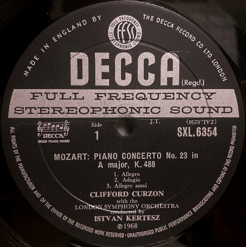 英DECCA カーゾン&ケルテス/モーツァルト ピアノ協奏曲第23番, 24番